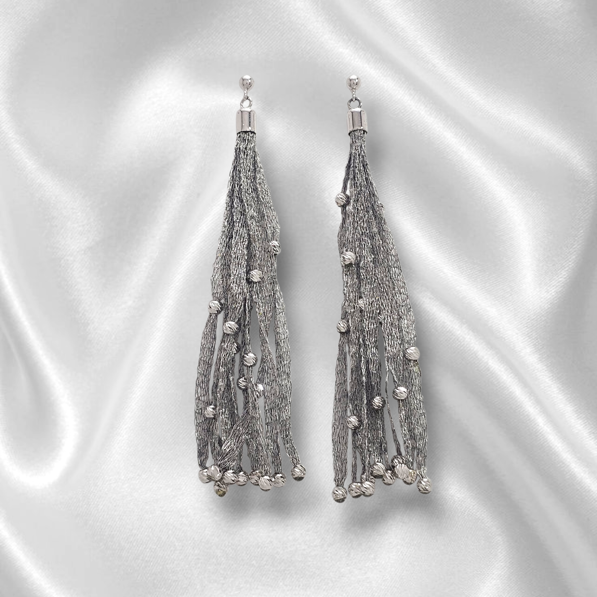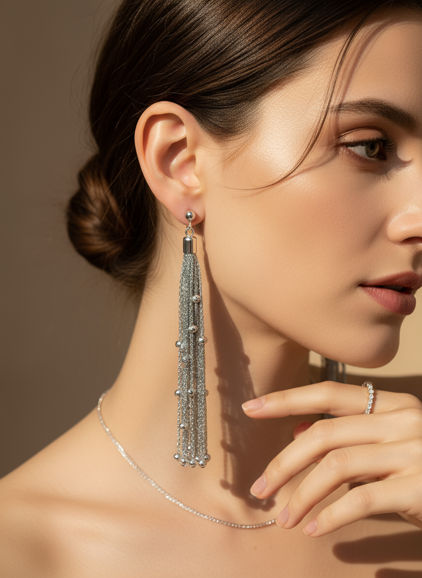 Cosmo系列象徵著女性如宇宙般深邃、自由與無限可能。OMG-1412-03-2SH耳環的設計靈感來自星體運行的軌跡與能量流動,Orietta Martin以銀色流蘇象徵女性在生活中流動的情感與堅定的力量。