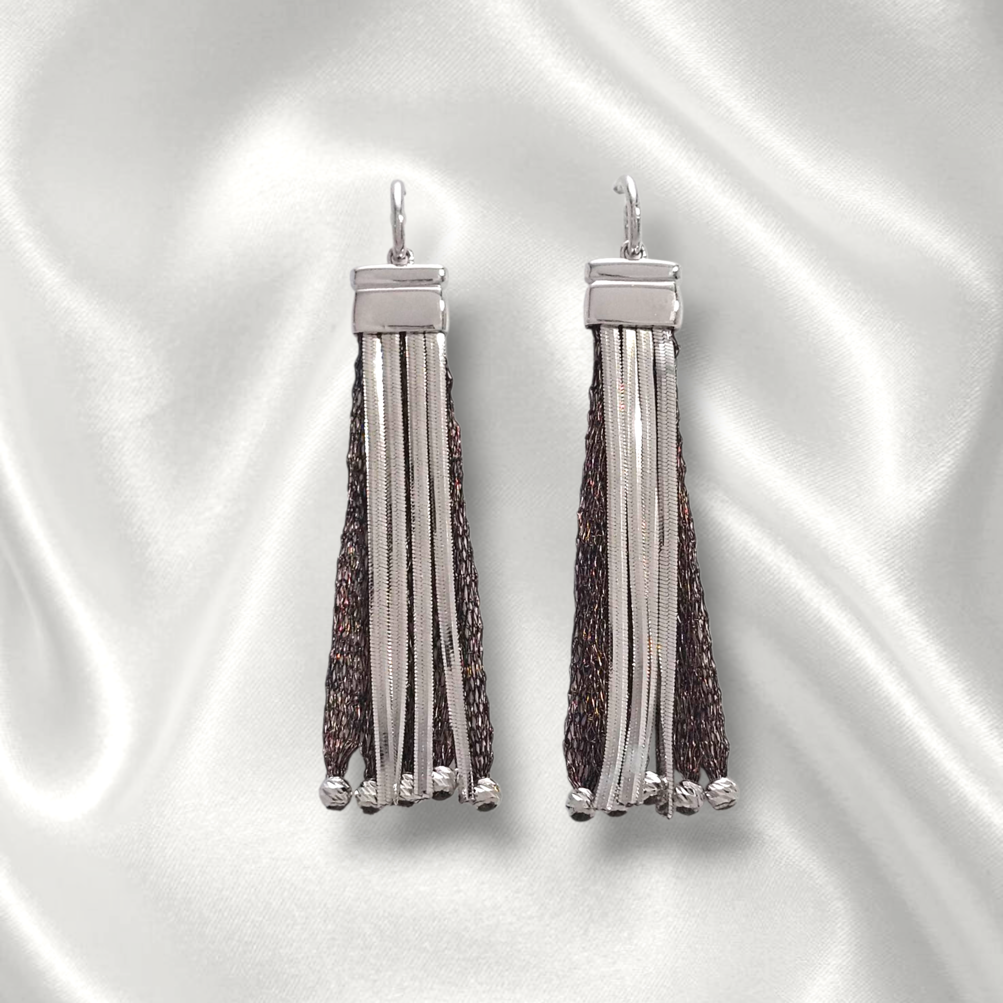 Gioielli系列以「珠寶即語言」為設計理念,OMG-1715-03-2BH耳環透過鍍銠銀鏈與啡色銅絲的交錯設計,象徵女性在都市生活中展現的堅韌與柔美交融。Orietta Martin將建築感線條與金屬質地融合,打造出一款既有藝術氣息又具實穿性的飾品。