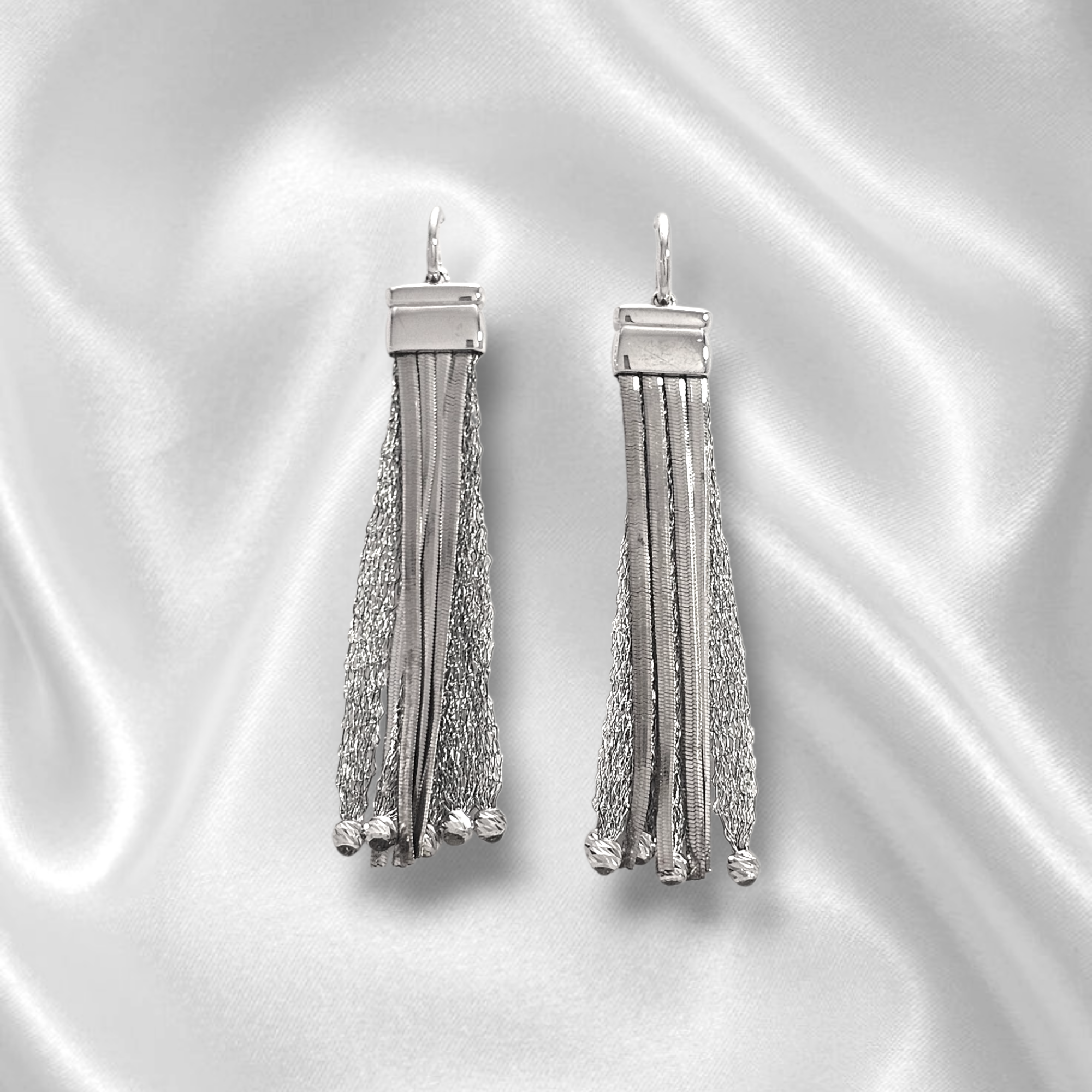 Gioielli系列以「珠寶即語言」為設計理念,OMG-1715-03-2SH耳環透過鍍銠銀鏈與銀色銅絲的交錯設計,象徵女性在都市生活中展現的堅韌與柔美交融。Orietta Martin將建築感線條與金屬質地融合,打造出一款既有藝術氣息又具實穿性的飾品。